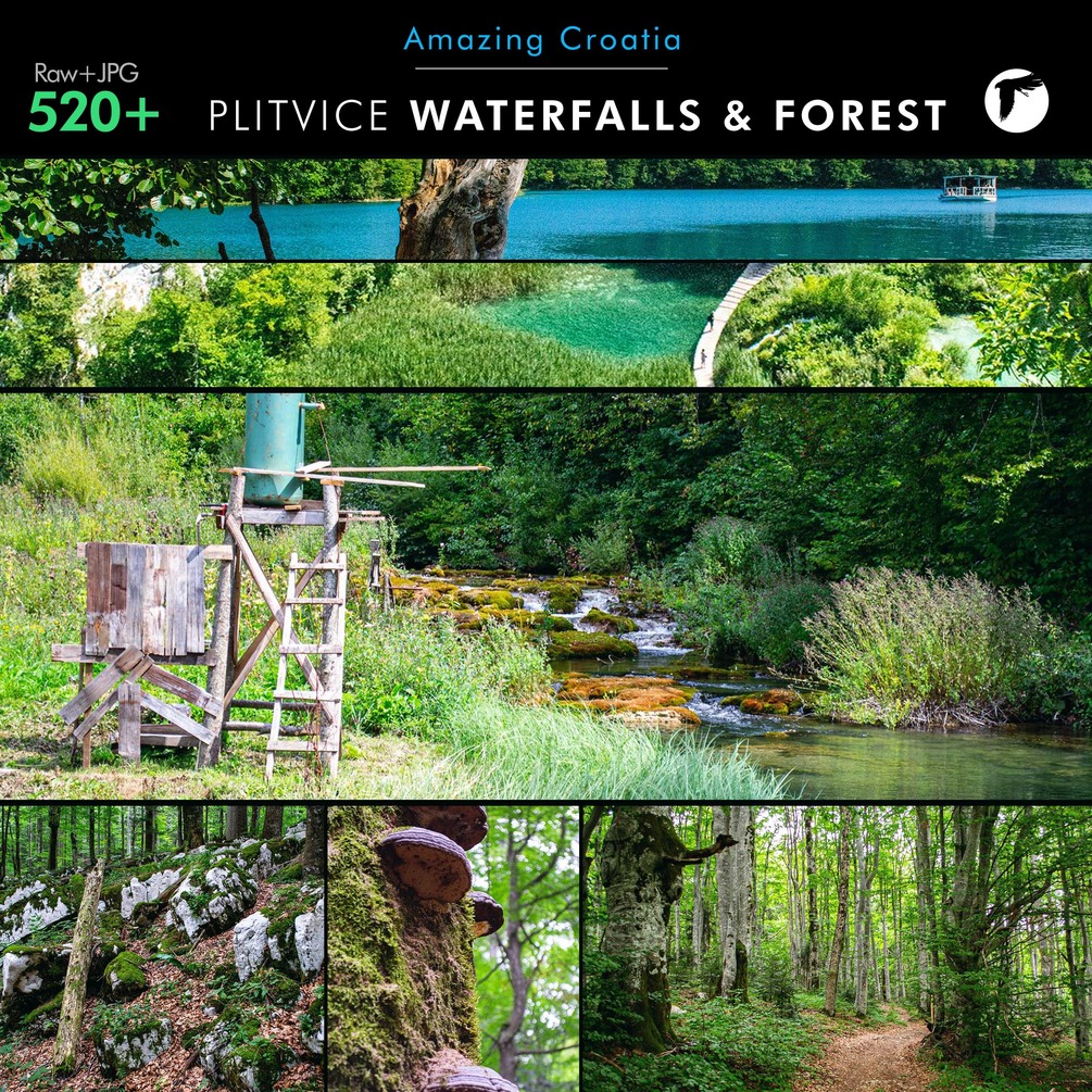 This pack contains around 520+ ROYALTY FREE photos all around Plitvice Jezera Park, including waterfalls, rivers, forest and surroundings. Close-ups of flowers, plants, rocks, tree trunks, insects, some wide angle shots, panoramas (for stitching), all times of day.